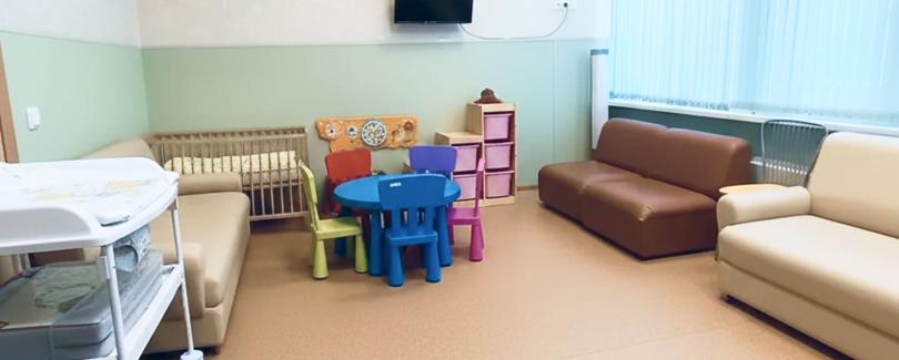 - Простор и уют: Комнаты достаточно велики, чтобы родители с детьми могли свободно перемещаться, играть и отдыхать. Удобные кресла и диваны, столики для кормления, пеленальные столы — здесь продумана каждая деталь.